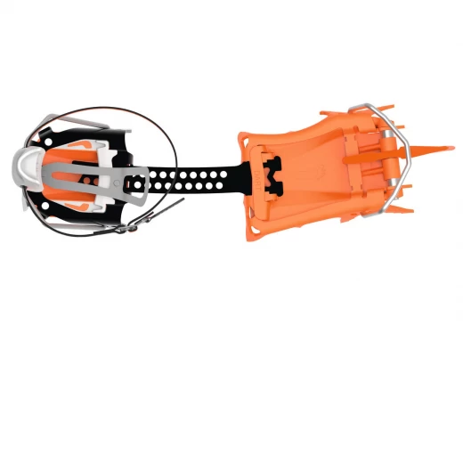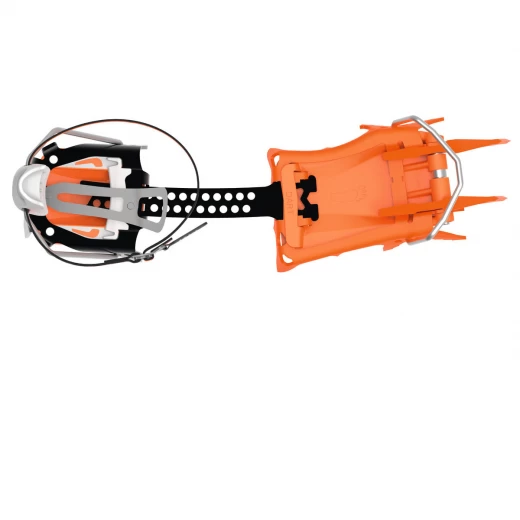 - Système de fixation : Leverlock Fil (système pour toutes les chaussures d’alpinisme technique et de glace avec débords avant et arrière)