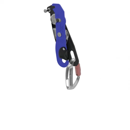- Cliquet de verrouillage sur le flasque ouvrable permettant d'installer facilement la corde, tout en gardant l'appareil connecté au harnais,