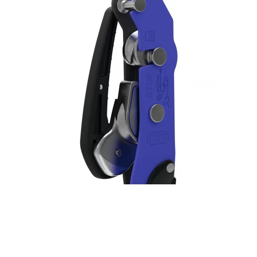 La poignée ergonomique orientée de ce dispositif Petzl facilite la préhension et le contrôle du coulissement de la corde grâce à son design spécifique.