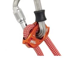 Simple d’utilisation, fiable et ergonomique, le bloqueur Adjust de cette longe Petzl permet d’ajuster la longueur de la corde d’une seule main.