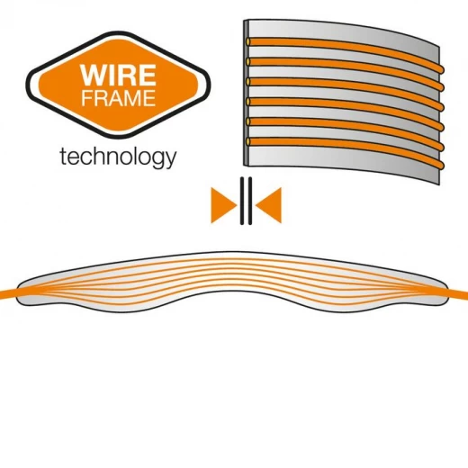 – le biais en tissu collé en ceinture, évite les points de pression et offre une résistance optimale à l'usure,
