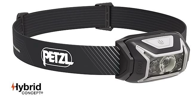 La lampe frontale Actik est une lampe performante et ultra-polyvalente grâce à son éclairage multifaisceau et sa puissance de 600 lm. L’éclairage rouge permet de préserver la vision nocturne et de ne pas s’éblouir lors des évolutions en groupe. Le bandeau réfléchissant permet d’être bien vu de nuit. Livrée avec la batterie rechargeable Core, Actik est aussi compatible avec trois piles AAA, grâce à la construction Hybrid Concept.