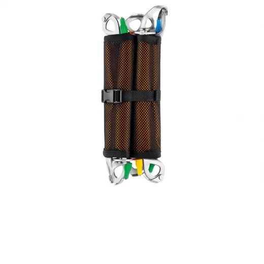 Peu encombrante et facile à glisser dans un sac à dos d’alpinisme, cette pochette Petzl de 160 grammes est équipée de 8 compartiments colorés pouvant recevoir des broches à glace de 9 à 21 cm de longueur et 18 mm de diamètre maximum.