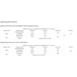 - trois niveaux de lumière blanche : MAX BURN TIME (durĂ©e d’Ă©clairage maximale), STANDARD (rapport puissance d’Ă©clairage/durĂ©e d’Ă©clairage optimal) et MAX POWER (puissance d’Ă©clairage maximale),