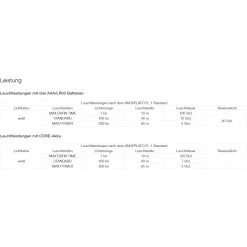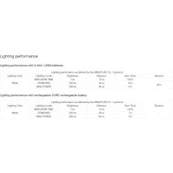 - trois niveaux d’Ă©clairage : MAX BURN TIME (durĂ©e d’Ă©clairage maximale), STANDARD (rapport puissance d’Ă©clairage/durĂ©e d’Ă©clairage optimal) et MAX POWER (puissance d’Ă©clairage maximale).